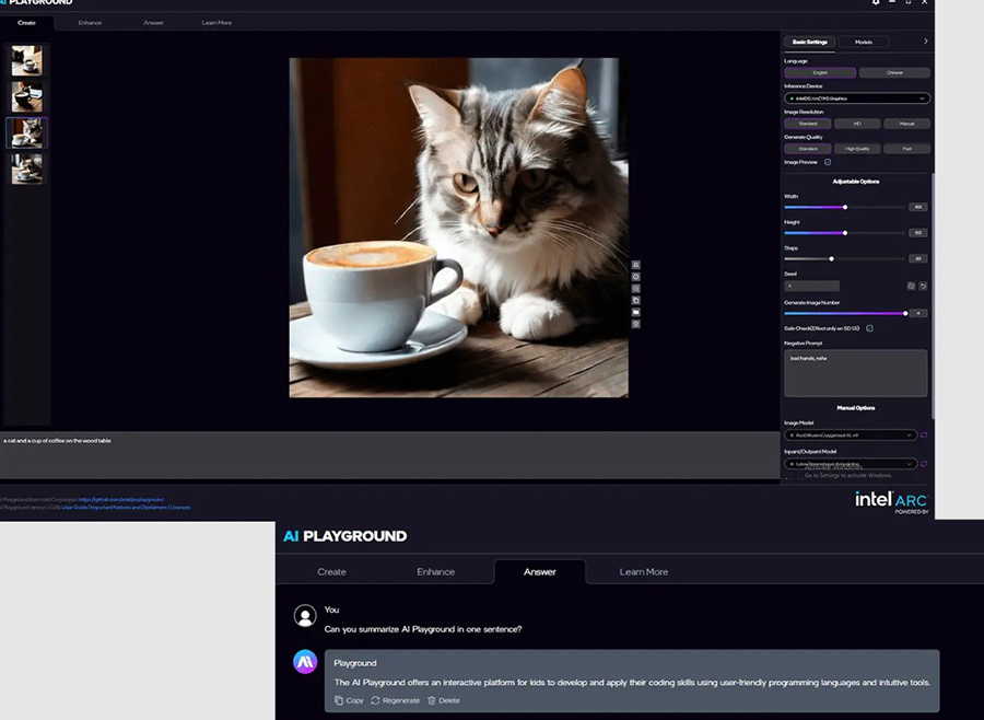 *Intel AI Playground yazılımı yalnızca belirli donanım konfigürasyonlarında desteklenir. Uyumluluk için Intel® web sitesini ziyaret ediniz.