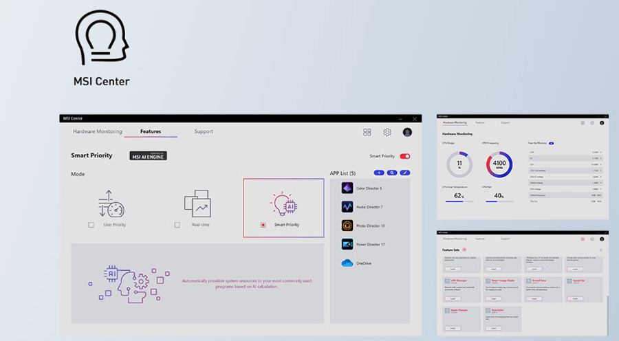 MSI Center kolay optimizasyon ve kaynak yönlendirme seçenekleri ile yazılım performansını geliştirir.