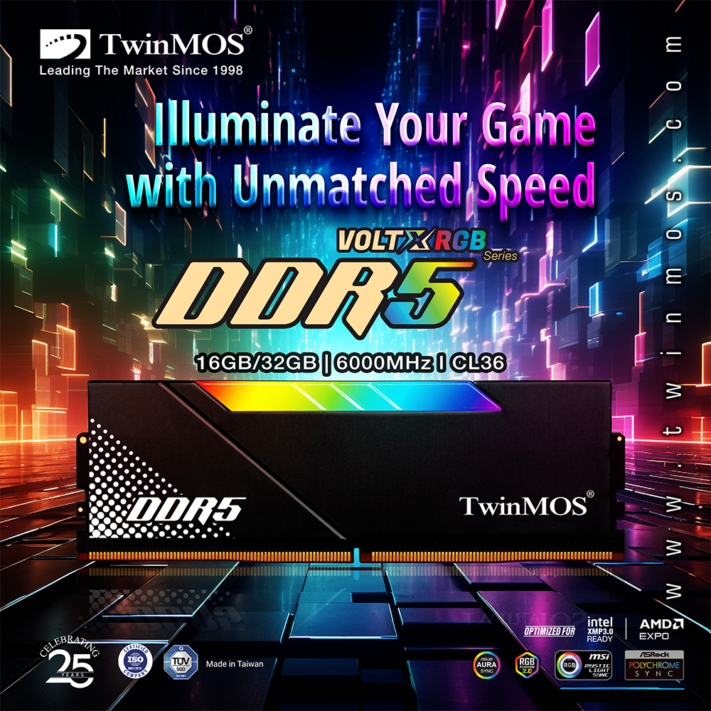 TwinMOS DDR5 16GB (1x16GB) 6000MHz CL36 RGB Desktop Ram Black