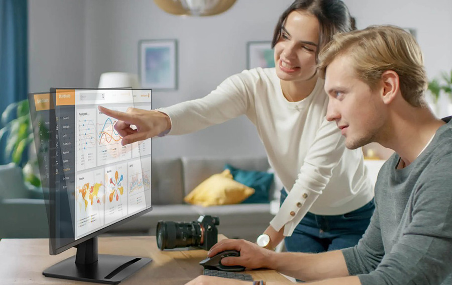 Bu monitör, genç nesil profesyonellerin sadelik ve verimlilik önceliğinden aldığı ilham ile arka kapağında sınırsız olasılıkları sembolize eden zarif oyma desenlere sahiptir.